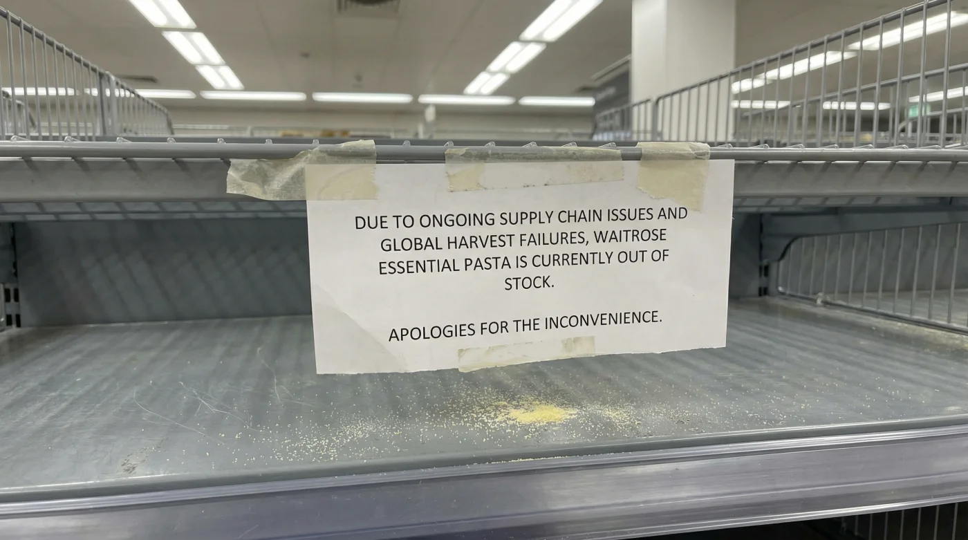 You stand in the softly lit aisle of your local Waitrose, reaching for that familiar, reassuringly heavy white-and-green bag of Essential penne. You expect the satisfying clatter of dry pasta hitting the metal cage of your trolley, a sound that signals an easy midweek dinner. But today, your hand meets empty shelving. The crisp rustle of 95p store cupboard security has vanished. A small, polite printed card apologises for the absence of the Waitrose Essential pasta range. In that quiet moment, the invisible thread connecting your kitchen in the UK to the sun-scorched hills of Southern Europe suddenly pulls taut.