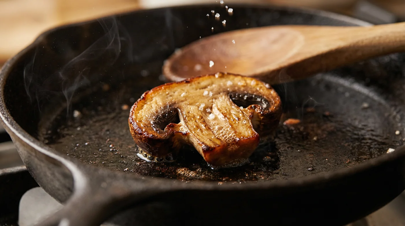 Picture a typical Tuesday evening in your kitchen. The butter foams in a heavy iron pan, spitting gently as you tip in a punnet of freshly sliced button mushrooms. Instinctively, your hand reaches for the salt cellar. A quick pinch scattered over the pan—just as you would naturally do when softening onions, celery, or courgettes—and suddenly, the acoustic rhythm of the kitchen changes. That aggressive, satisfying sizzle drops into a wet, sorrowful simmer. Within minutes, your once-crisp mushrooms are swimming in a muddy grey puddle, shrinking into sad, rubbery discs. You haven’t roasted them; you have accidentally boiled them.