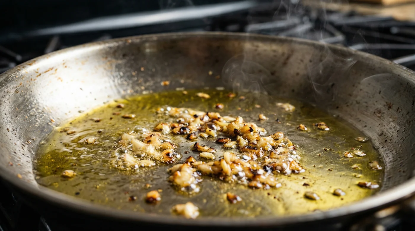 | Pan Temperature Control | A steady, gentle sizzle that sounds like light rain on a window. | Aggressive spitting and smoking oil when the garlic is dropped in. |