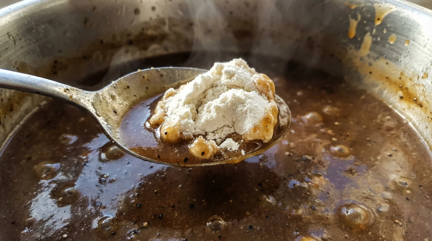 Return to your bubbling gravy. Pour the cold slurry in a slow, steady stream while stirring the hot liquid continuously. Watch as the heat activates the suspended starch. Within a minute, your watery juices will transform into a rich, velvety sauce.