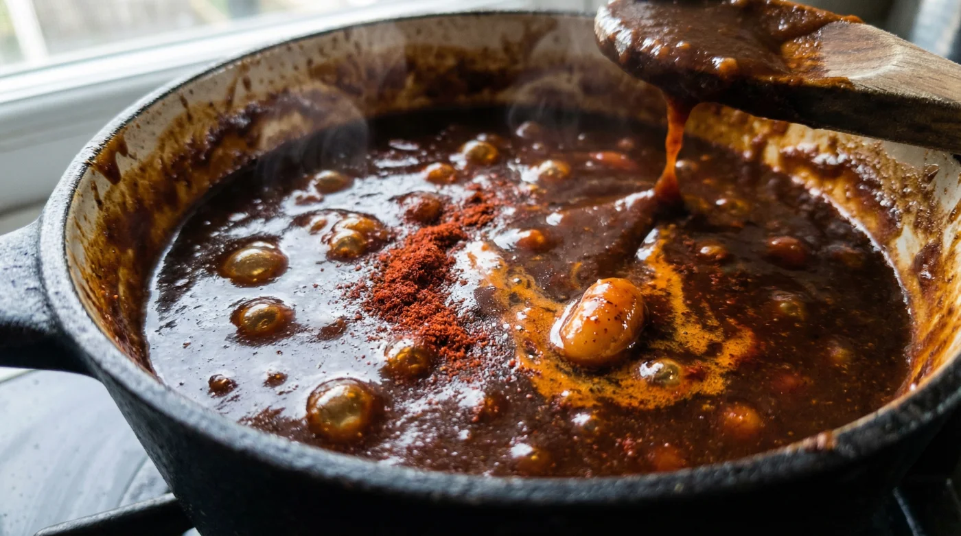 | Minute 1: The Heat | The smoked paprika oils bloom, integrating the oak-smoke aroma into the tomato and vinegar base. |