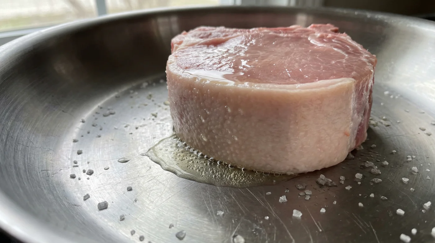 For decades, we have been taught to fear the cold pan. Rigid kitchen wisdom dictates that meat must be shocked by searing heat to seal in the juices. Yet, this aggressive approach is exactly why your pork chops dry out instantly. When a thick layer of cold fat meets a scorching surface, the protein fibres seize in panic. It is the culinary equivalent of jumping into a freezing lake; everything tenses abruptly. The fat cap curls inward, pulling the meat with it, lifting the centre of the chop completely away from the heat source.
