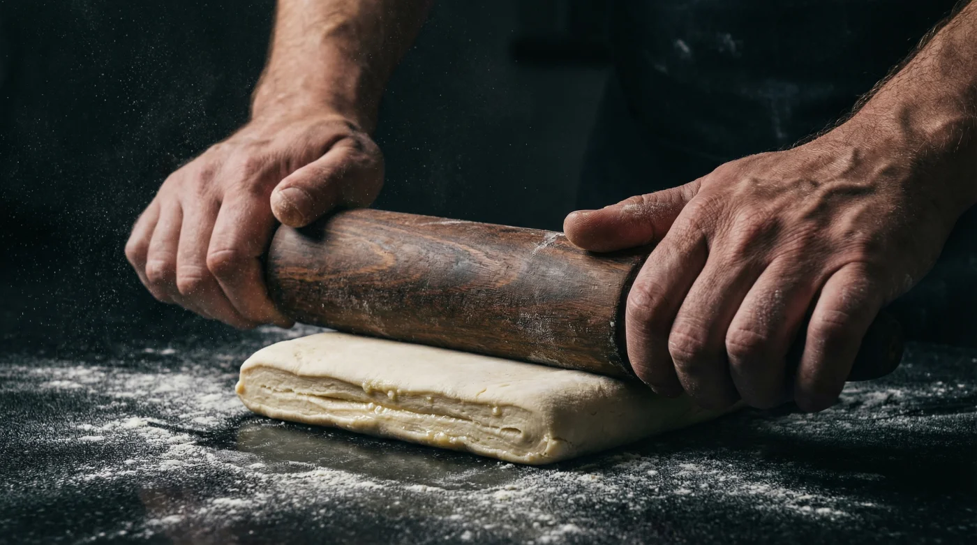 | Pressure Application | Roll laterally, never pressing straight down. | Prevents butter layers from crushing, ensuring maximum lift. |