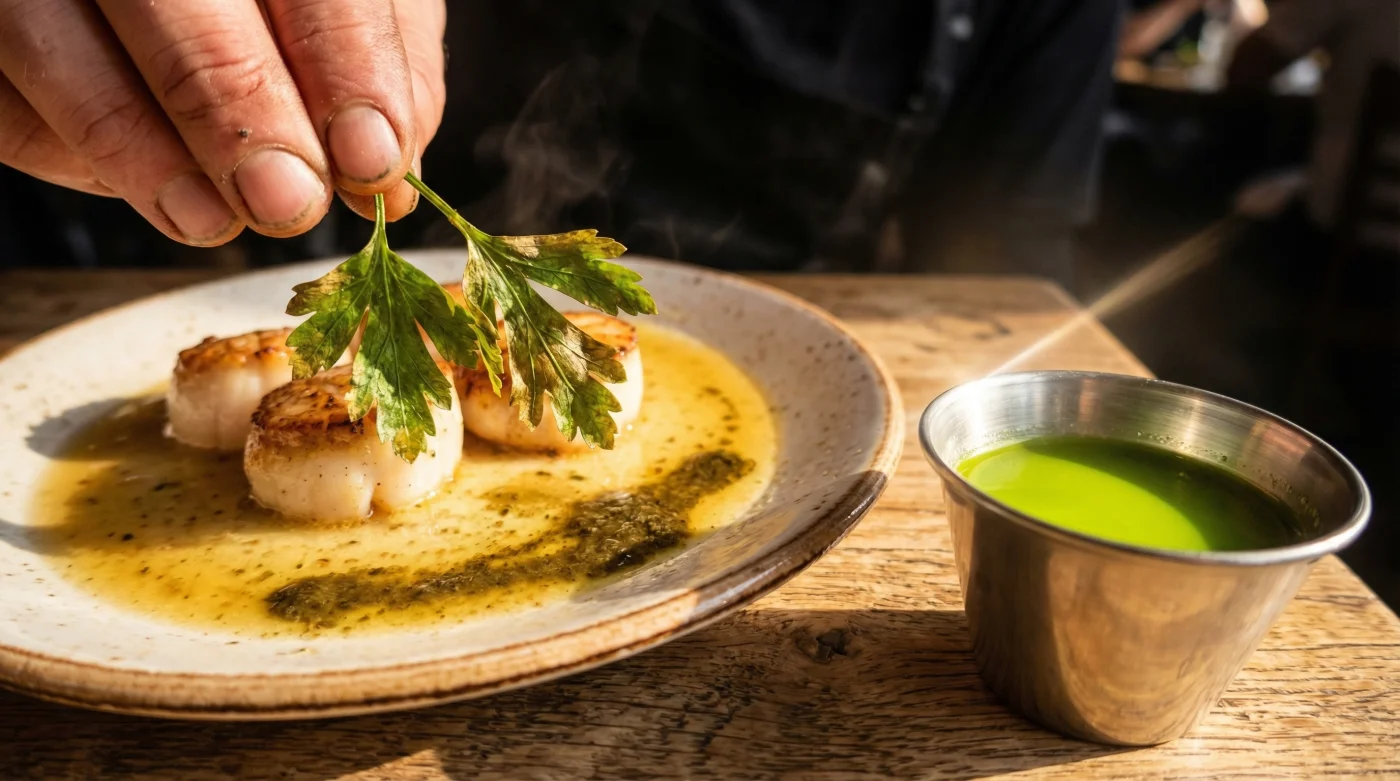 • The Oil-Blanch: Instead of dropping raw herbs onto hot food, professionals briefly submerge the micro-chopped parsley in gently warmed, high-quality olive oil for just a few seconds.