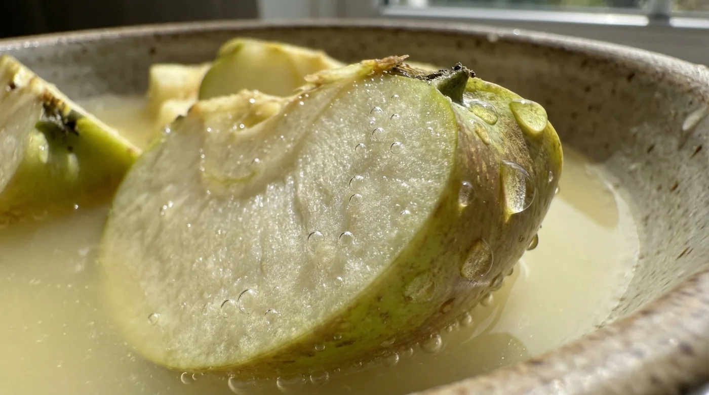 By introducing a sharp citric shock—a highly acidic wash—you drastically lower the pH of the fruit’s exterior. This rapid acidification hardens the pectin at the surface, effectively wrapping each individual slice in an invisible, thermal-resistant corset that holds the flesh firm.