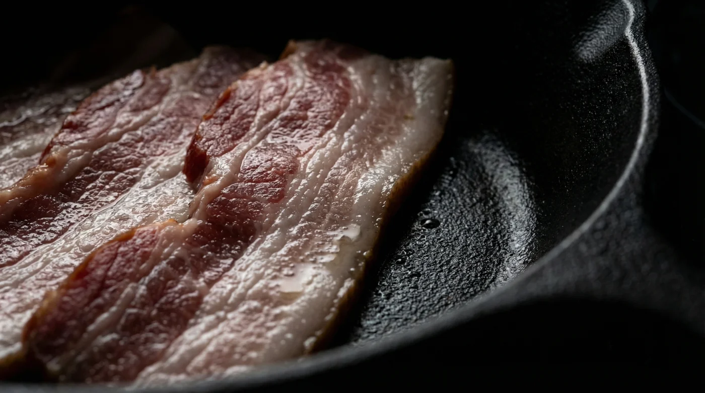 Place the rashers flat into the completely cold pan, ensuring they do not overlap. Set the burner to a medium-low flame. As the metal slowly warms, the fat will begin to turn translucent, slowly seeping out to coat the base of the pan in a shimmering, fragrant liquid layer.