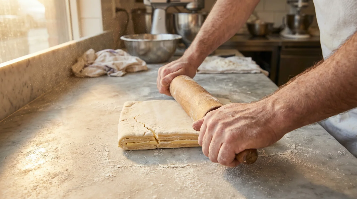 “A laminated dough is not a fragile flower; it is a structural mechanism that demands physical authority to function properly in the heat.” — Thomas Arkwright