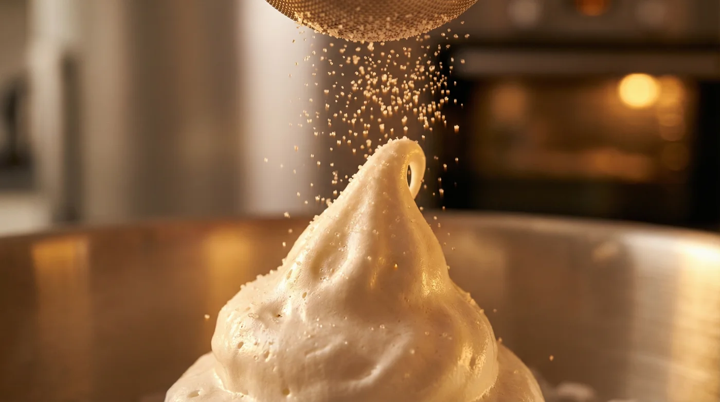 | Warm Caster Sugar | Pre-softens the crystal edges for immediate integration. | Saves you from over-whipping and guarantees a stable foam. |