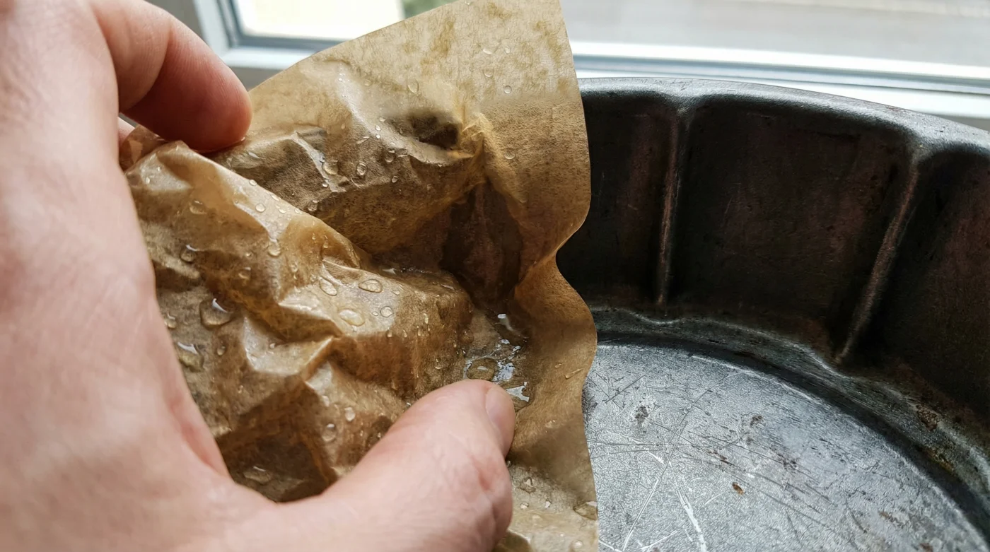 | Wet Scrunching | Soaking and crushing the parchment. | Zero gaps, no crust, saves minutes of frustrating prep. |