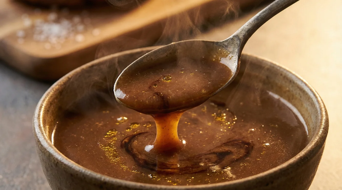 Creating a dark, convincing gravy without animal fat often yields a sweet, thin liquid reminiscent of French onion soup. By doubling the yeast extract and adding a splash of dark soy sauce, you create a complex, meaty profile that completely fools the palate, bringing genuine weight to roasted vegetables.