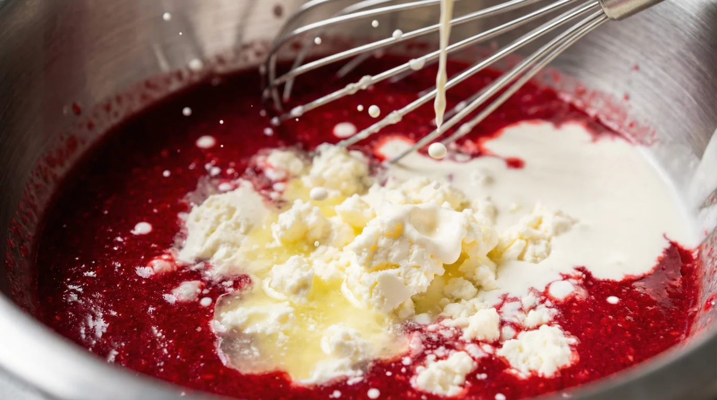 Then comes the addition of the fruit. You pour in a vibrant, tart raspberry puree, expecting a beautiful marbled ripple of crimson and white. But within three gentle turns of your spatula, the texture aggressively seizes. The emulsion completely shatters, leaving you staring at a bowl of grainy, weeping fat that resembles scrambled eggs.