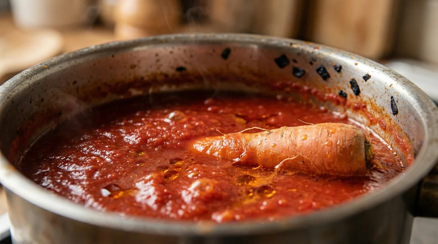 | The Carrot Core | Drop a whole, peeled raw carrot into the fresh pan to simmer. | Acts as a natural filter, absorbing metallic tastes without making the sauce overly sweet. |