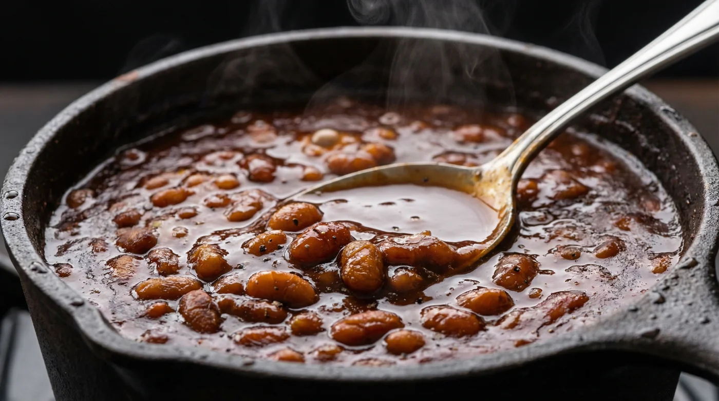 He began aggressively reducing standard catering tins of beans in a wide, flat pan, folding in dark soy sauce and a knob of cold, unsalted butter just before service. The soy transformed the tomato base from a bright, metallic syrup into a dark, smoky glaze that tasted like it had been simmering under a pork shoulder for twelve hours. It became a local legend, built entirely on cheap ingredients.