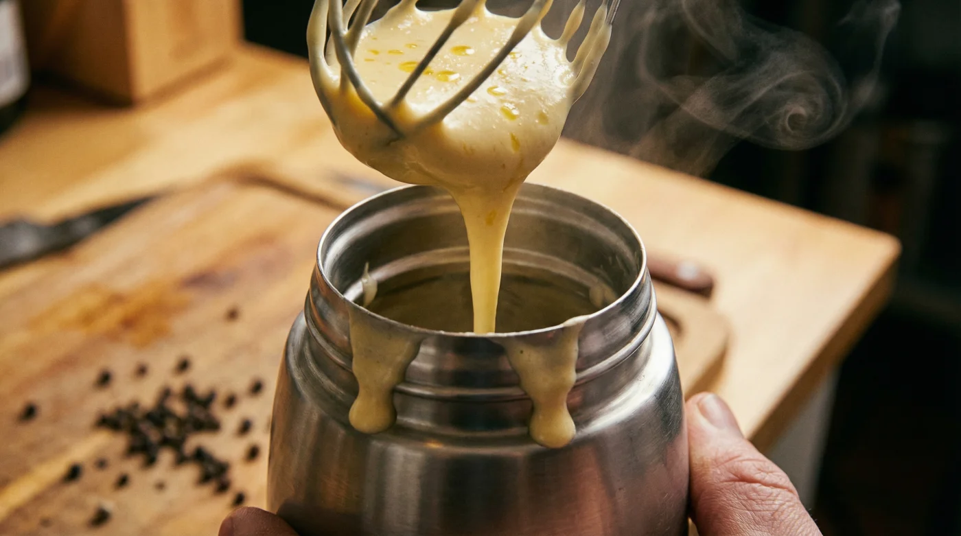 Can I rescue a sauce that has already split using this method? Unfortunately, the thermos is a preservation tool, not a time machine; you must whisk in a splash of boiling water to re-emulsify the sauce before transferring it to the flask.