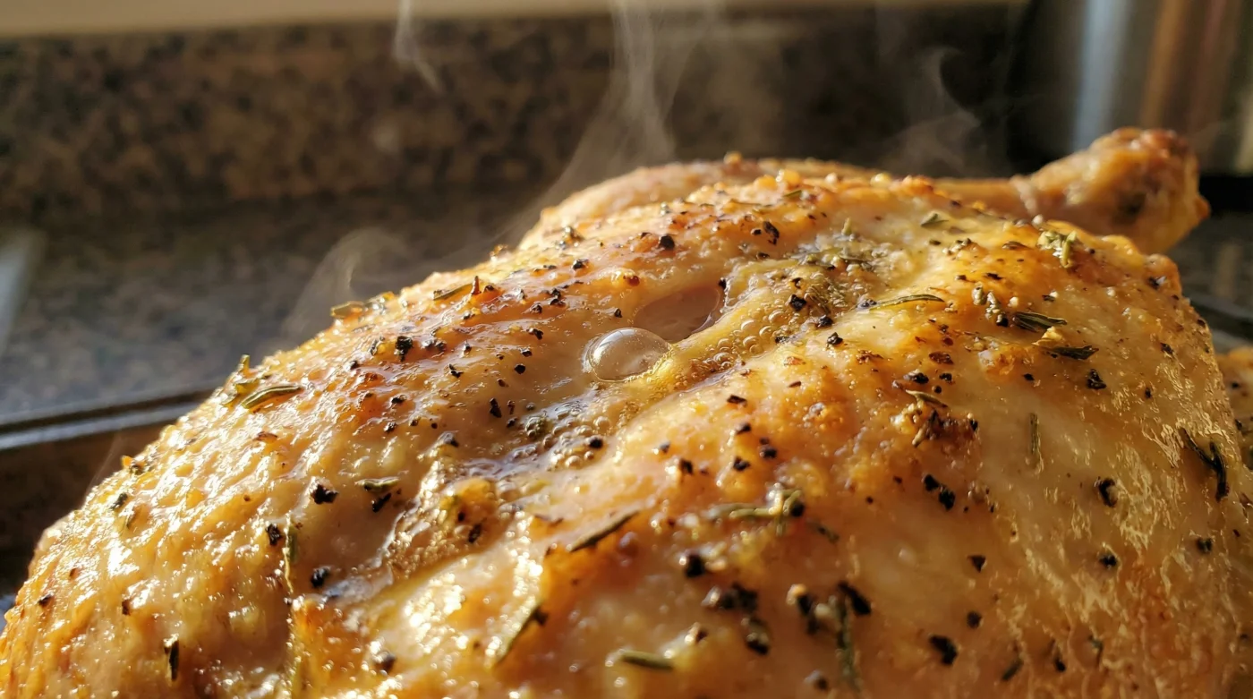 The thick barrier of fat clings desperately to the meat, physically trapping the natural juices inside while the egg proteins coagulate to form a protective crust. The moisture simply has nowhere to evaporate. The chicken practically stews in its own natural juices, entirely shielded from the harsh roasting environment.