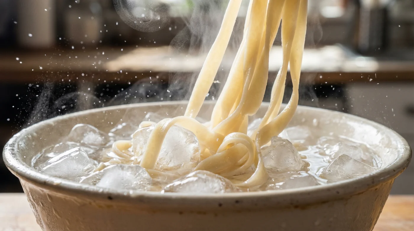 Egg-based delicate ribbons, such as pappardelle or tagliatelle, require a much gentler hand. Their high fat and protein content means they will contract incredibly fast when exposed to ice. Leave them in the cold plunge for exactly thirty seconds—any longer, and the egg structure will become unpleasantly leathery.