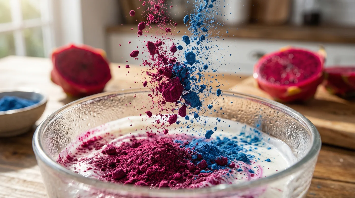The dyes are natural, but the base often remains sweet. However, the tartness of the real fruit powders creates a much more balanced profile.Can I use beetroot powder instead of pitaya for the pink?
