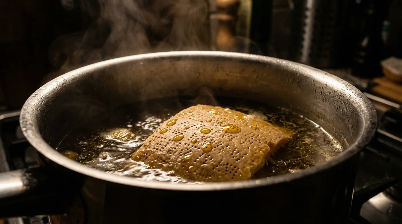 Bring the water to a simmer, ensuring the surface of the liquid trembles slightly without ever boiling violently. Allow forty-five minutes of fully submerged cooking for the glutamates to properly and evenly disperse into the bubbling broth.