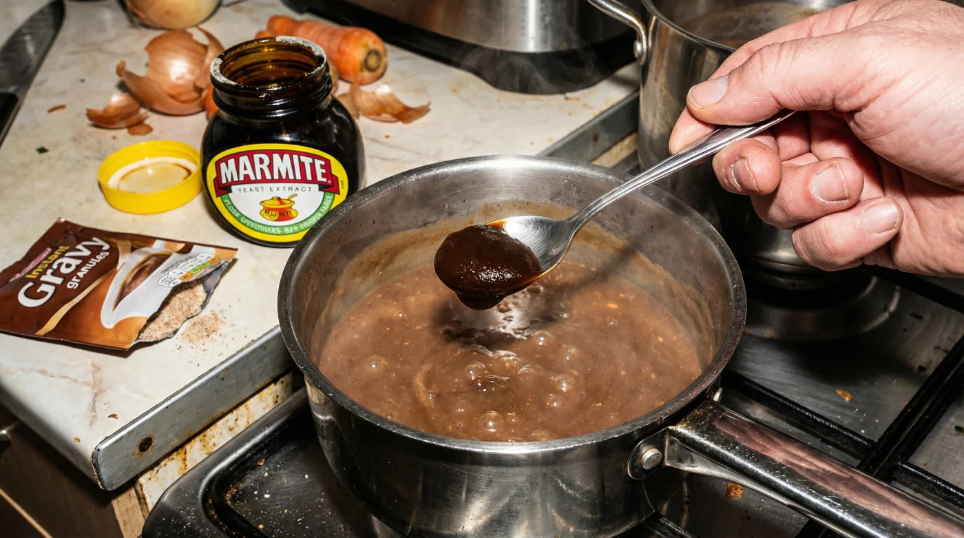In a professional kitchen, chefs spend three days reducing beef bones, roasting mirepoix, and skimming impurities to extract these exact savoury compounds. They are chasing umami—that elusive, mouth-filling depth that makes a sauce linger on the palate. Whisking a single teaspoon of Marmite into a standard instant gravy bypasses those seventy-two hours entirely. It acts as a concentrated volume dial for meatiness, turning a flat, watery mix into a sauce with a formidable, glossy backbone.