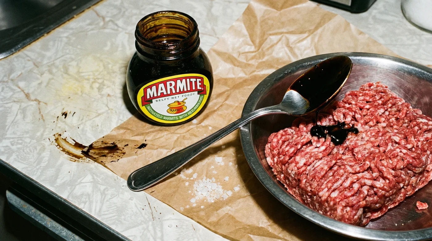 If you are cooking thin, aggressive smash burgers, the pan contact is doing most of the work. You need the yeast extract to melt instantly into the fat. Mix half a teaspoon of Marmite per 500g of mince, and do not overwork the meat. The intense heat of the cast iron will catch the sugars in the extract, creating a wildly crisp, almost burnt-caramel lace around the edges of the patty in less than three minutes.