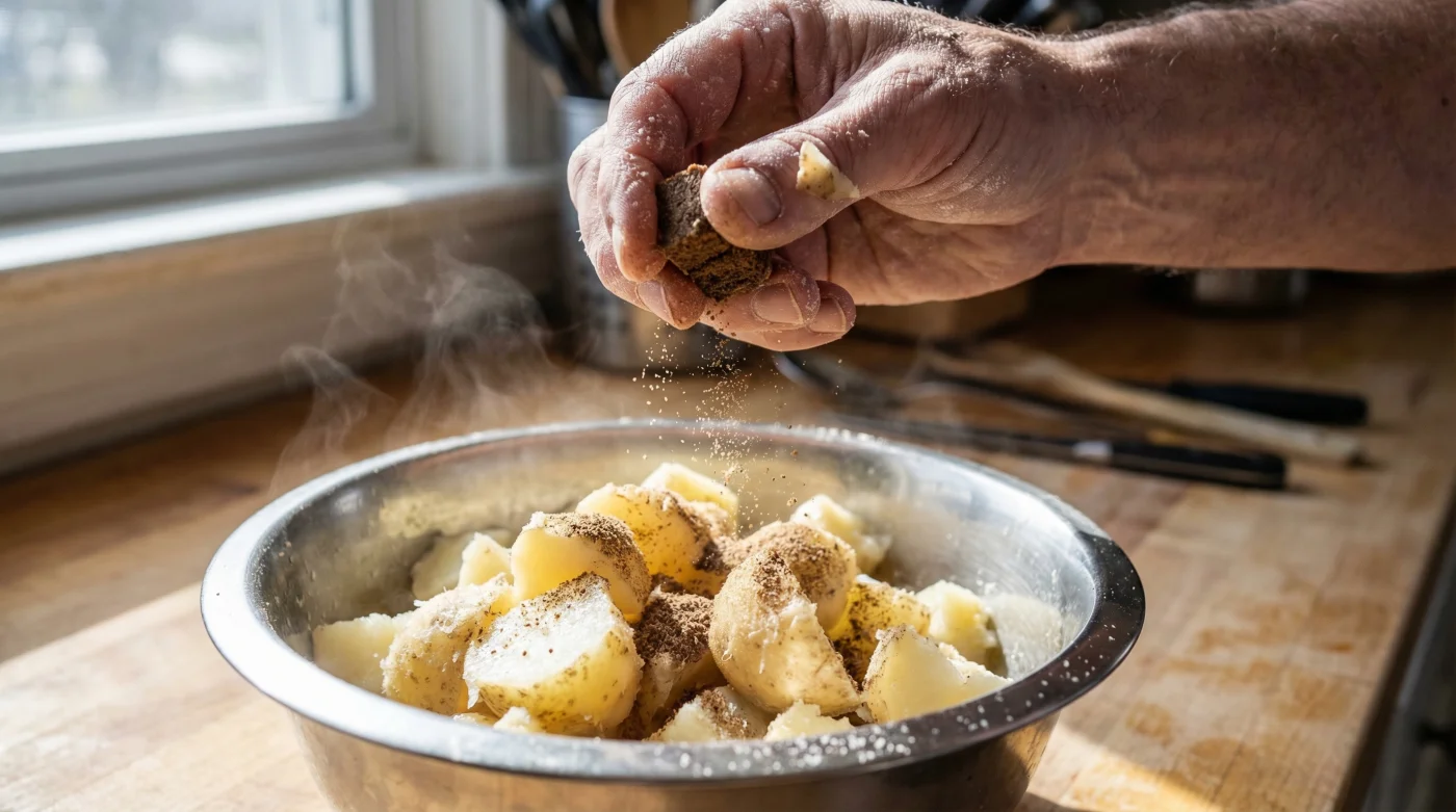 • Crush the magic ingredient: Take one or two dry Oxo Beef Cubes and crumble them into a fine dust directly over the hot, dry potatoes. Toss vigorously until every edge is coated.