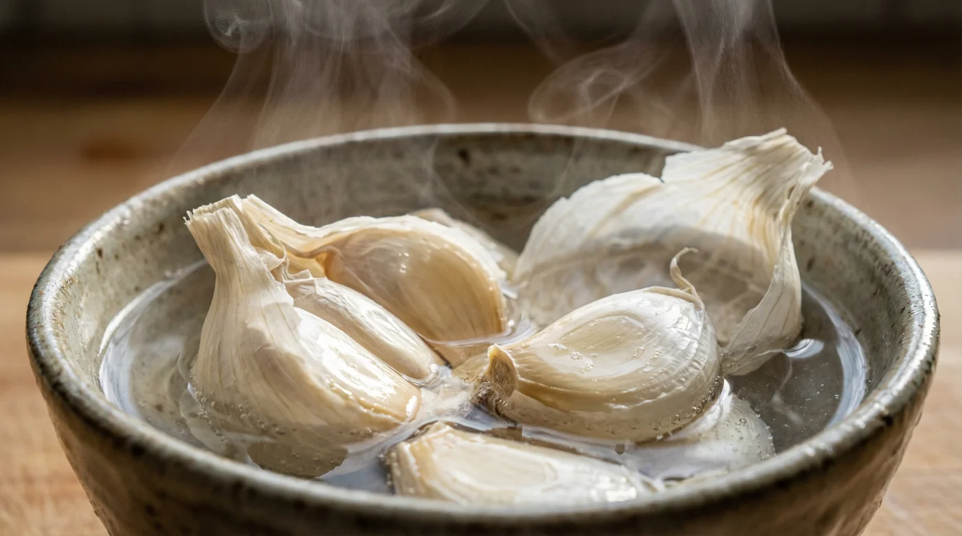 No, because the skin remains entirely intact during the brief soak, the internal oils and allicin compounds are completely protected from water ingress.Can I use boiling water to speed up the process?