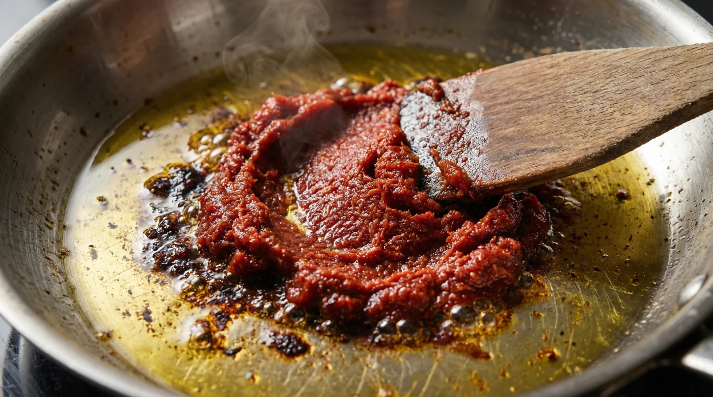 To the professional cook, dropping raw tomato paste into water is like trying to bake bread with unkneaded dough. The paste is carrying the ghost of its industrial packaging. It possesses a harsh metallic acidity that demands to be broken down, cooked out, and fundamentally transformed before it ever meets a drop of liquid.