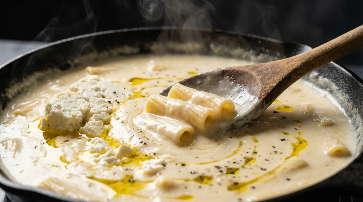 | The 5-Minute Blend | Agitating raw feta with boiling pasta water. | Creates an instant, velvety emulsion, saving time and energy costs. |