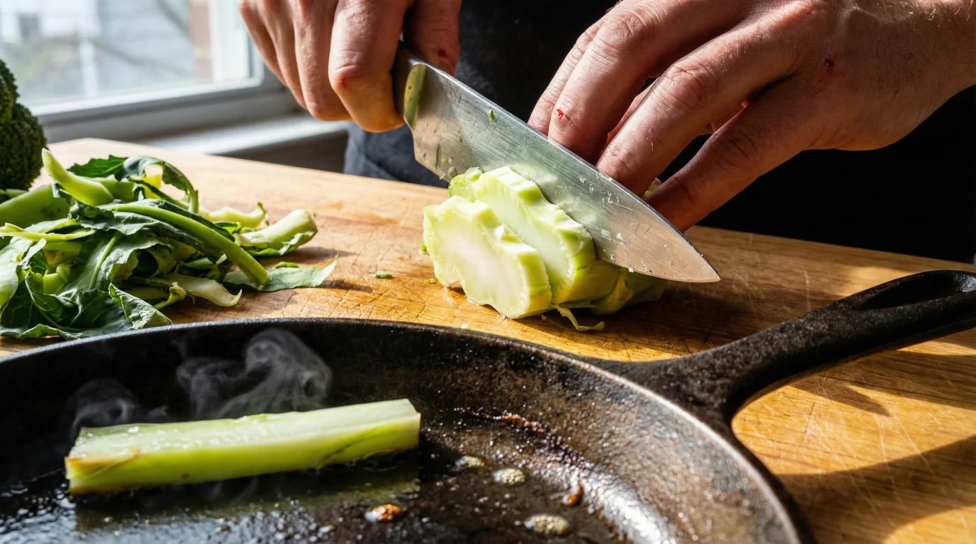 I learned this during a chaotic dinner service in a cramped, steam-filled kitchen in Soho. A seasoned prep chef named Marcus watched me aim a handful of thick stalks towards the bin. He caught my wrist mid-air. ‘You are throwing away the prime cut, mate,’ he muttered, grabbing a battered metal vegetable peeler. With three swift, downward strokes, he stripped away the tough, pale-green bark, revealing a translucent, jade-coloured centre. He sliced it into thin batons, tossed them into a blisteringly hot pan with a drop of rapeseed oil, and handed me a charred, glistening piece. It was a revelation. It was sweet, smoky, and possessed a tender bite that the soft florets could never achieve.