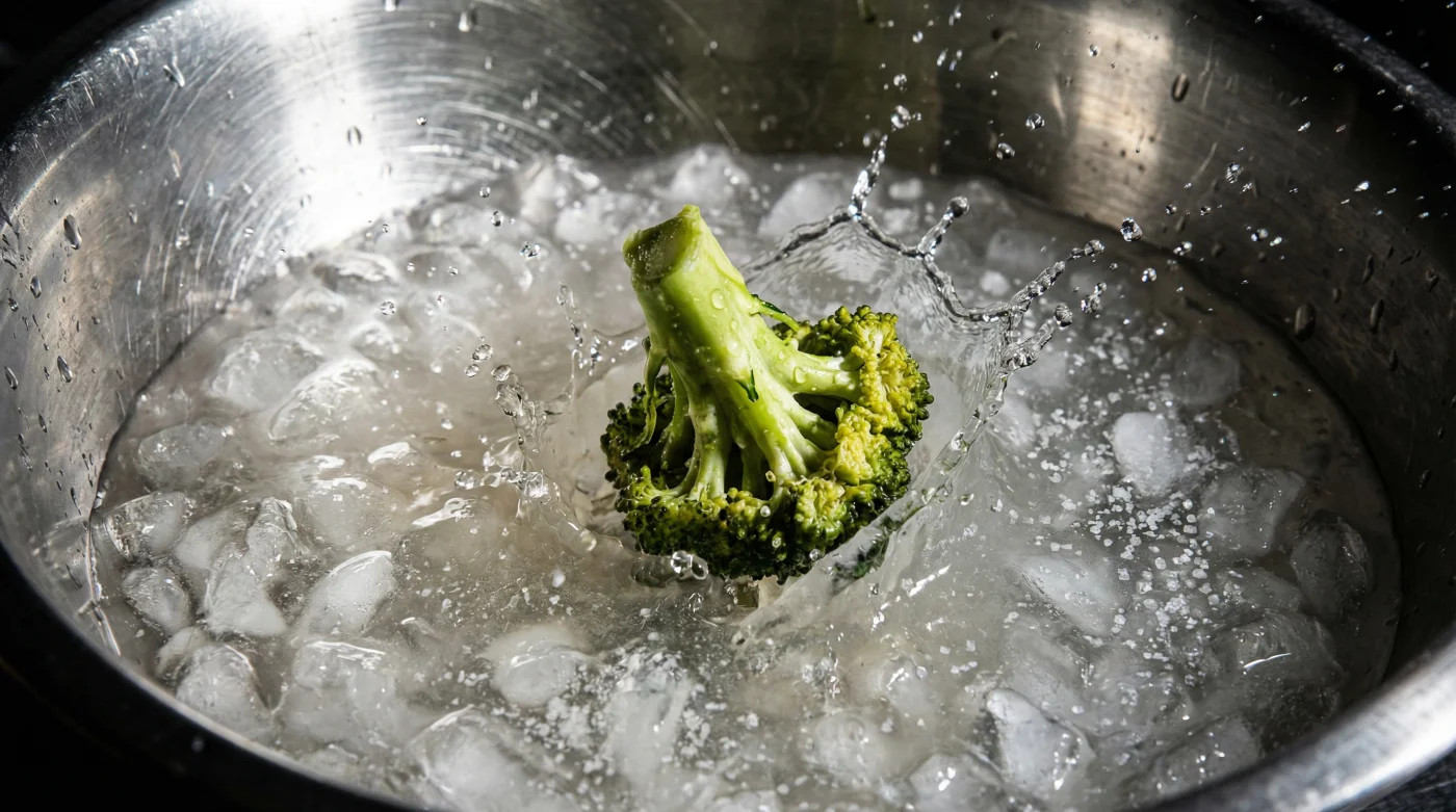 | Thermal Shock | Aggressive temperature drop halts residual heat immediately. | Prevents the broccoli from cooking further into an unappealing paste. |