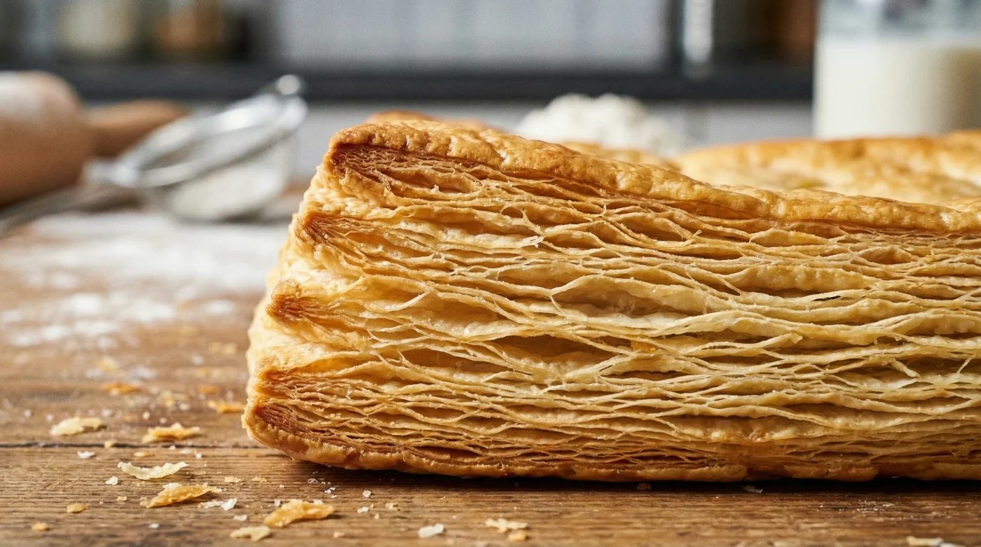 | Knife Technique | Pressing straight down rather than dragging the blade. | Prevents the fat layers from smearing, ensuring a vertical rise. |