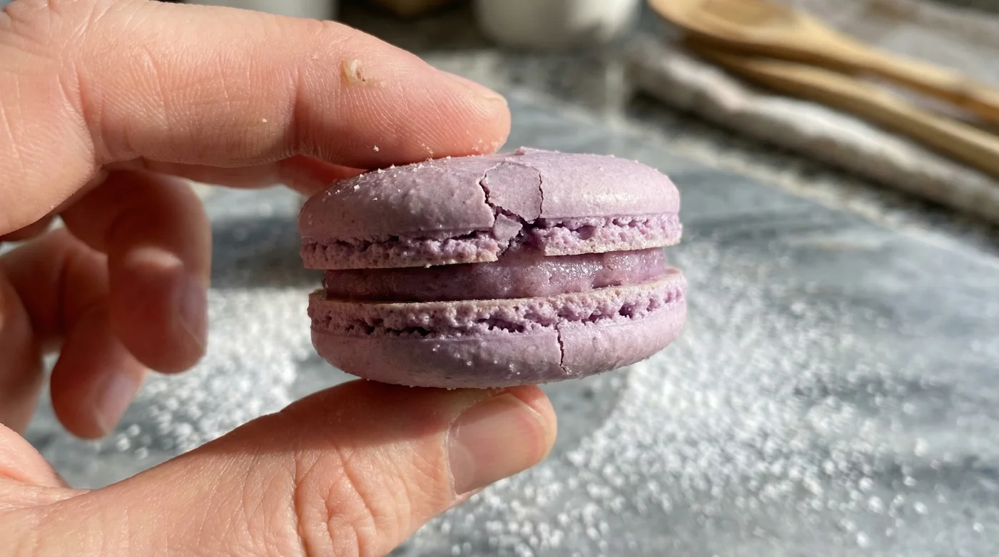 You stand in your kitchen, the scent of toasted almonds hanging warmly in the air. You rhythmically tap the heavy metal baking sheet against the worktop, listening to the sharp, echoing clatter. This simple action is designed to coax trapped air bubbles out of those tiny, pale circles of batter resting on the parchment. You watch them intently, holding your breath, already anticipating the anxiety of the oven.