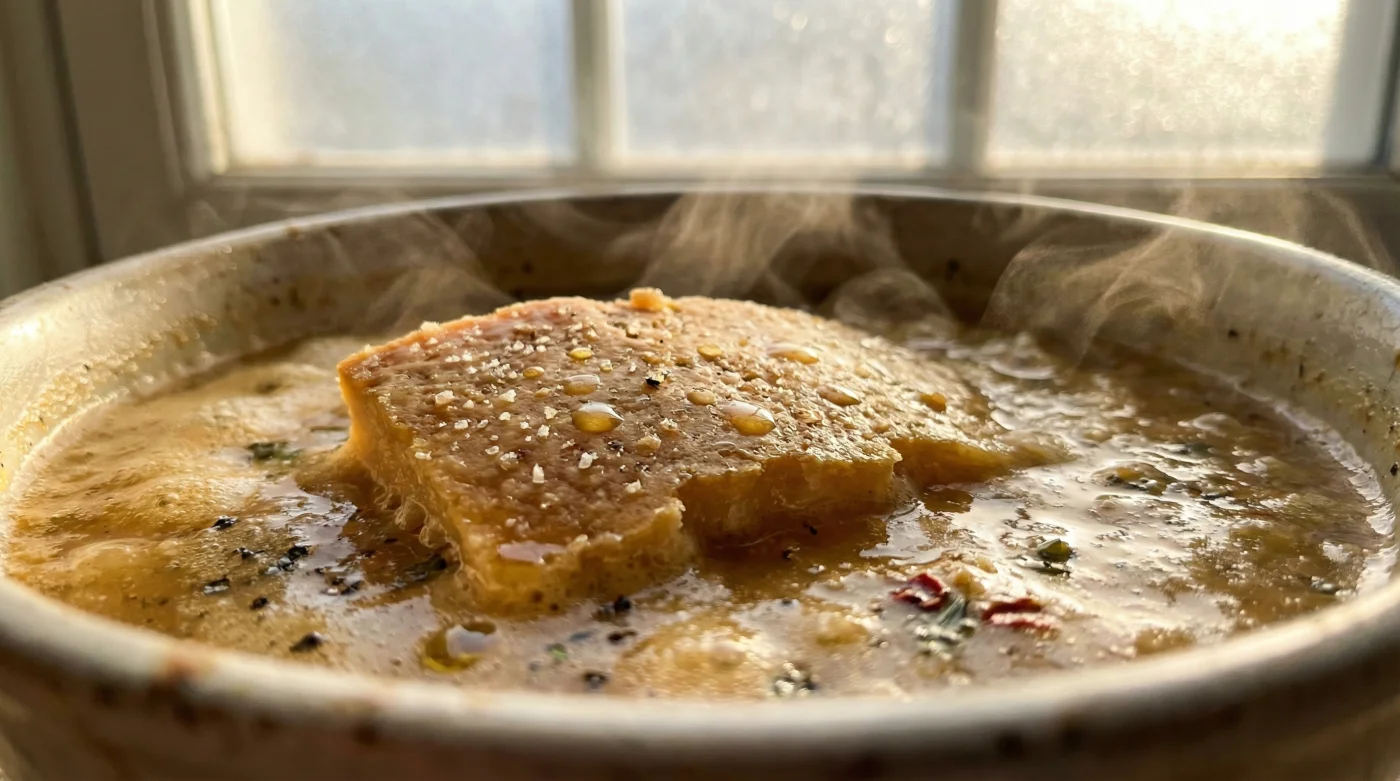 - The Gentle Submersion: Drop the rind into the pot only once the liquid has reached its final volume. Do not fry it with your base onions; it will seize and stick to the bottom of your heavy pan.