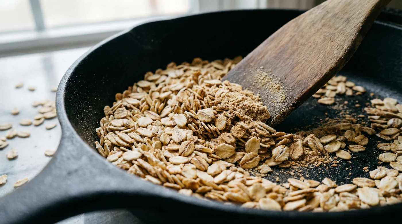 Elias Thorne, a 42-year-old pastry chef working in a boutique York bakery, treats standard rolled oats with the reverence usually reserved for raw coffee beans. ‘If you boil them straight out of the bag, you are washing away fifty percent of their character,’ he notes, standing over a massive cast-iron skillet. By tossing the dry flakes over a medium heat with just a pinch of flaky sea salt and perhaps a teaspoon of cold butter, Elias transforms the cheapest item in his kitchen into a high-margin textural element that sells out before ten in the morning.