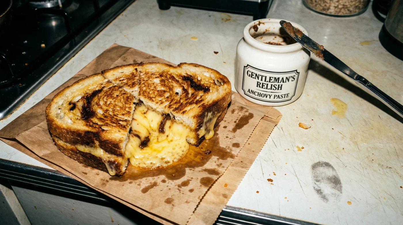 For the Modernist: You want texture. You are incorporating finely sliced leeks or pickled red onions into the melt. The Gentleman’s Relish should be folded directly into a small knob of softened butter before being applied to the inside of the bread. This **disperses the spiced salinity** evenly, ensuring the sweet crunch of the onion does not clash with a sudden pocket of pure anchovy.