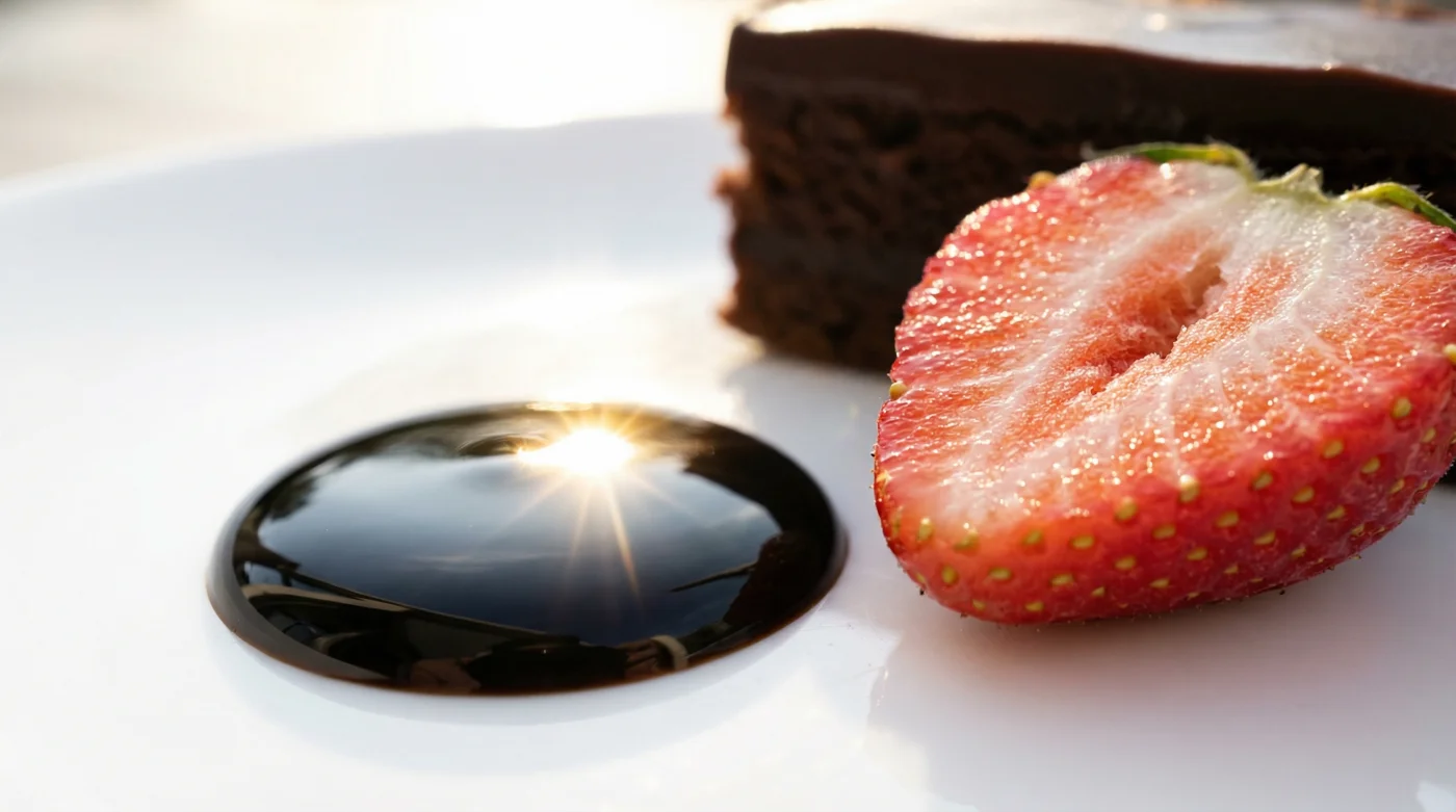The perspective shift happens when you stop thinking about adding sweetness and start thinking about introducing tension. A balsamic glaze offers an assertive acidity that commands the palate to pay attention, slicing straight through the cloying heaviness of the cocoa fat. It turns a one-dimensional slice of cake into a dynamic culinary experience, making the sweetness taste earned rather than inevitable.