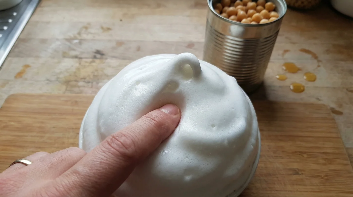 Then came the realisation that the soaking water from legumes behaves almost identically. During the cooking and canning process, proteins and dissolved starches seep out of the chickpeas and suspend themselves in the water. When you take a whisk to it, that microscopic net catches air bubbles and stacks them high, turning a murky puddle into a stiff, snowy peak.