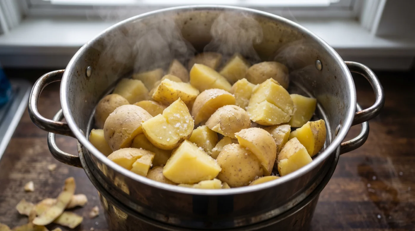 - The Finish: Mash immediately while piping hot; cold starch turns instantly gummy.