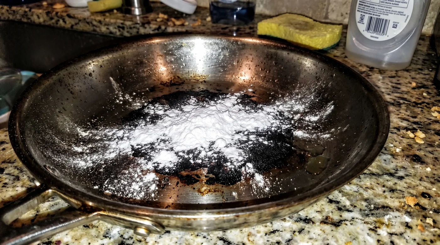 Alkaline Breakdown Expired baking powder shifts into a high-alkaline state, attacking carbon bonds instead of rising dough. Eliminates the physical pain of scrubbing while preserving the steel’s finish.