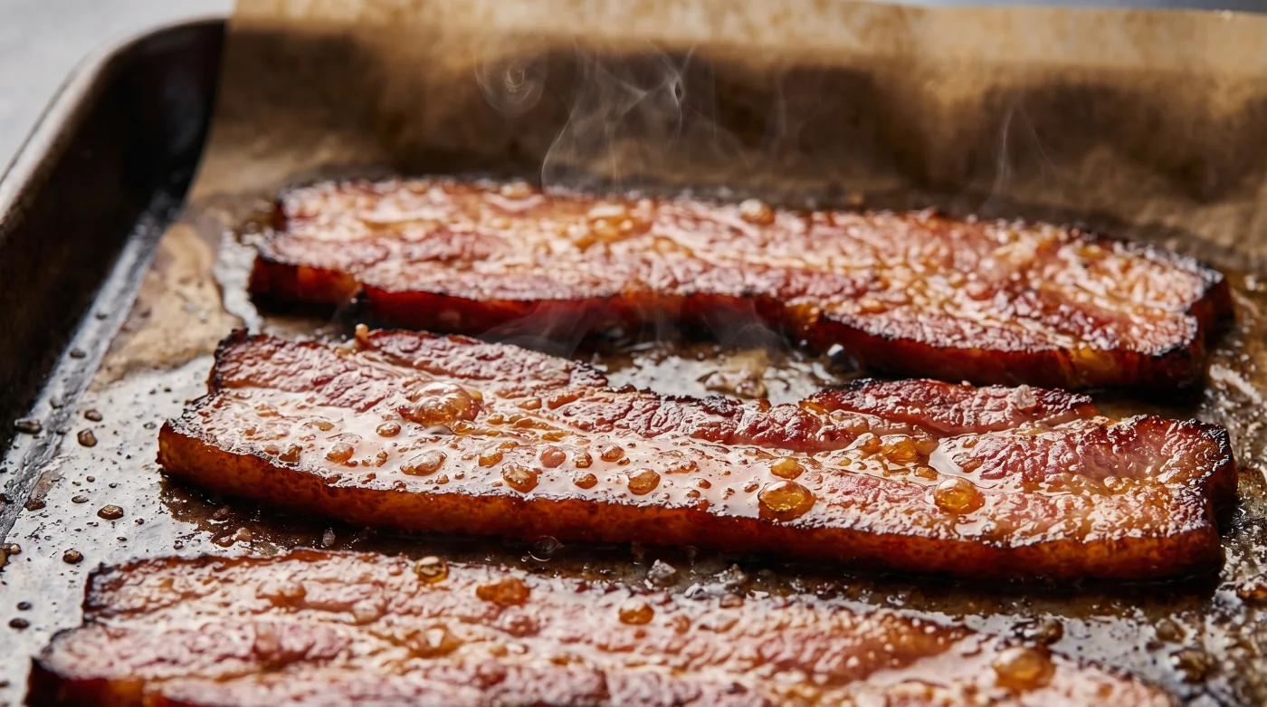 There is a quieter, infinitely more civilised approach. Walk into the kitchen of any high-end hotel in London before the breakfast rush, and you will not hear the violent spit of frying fat. Instead, you will see calm chefs sliding heavy aluminium trays into commercial ovens. The simple swap to baking completely redefines your morning routine, trading the messy, curled-up disaster for beautifully flat, evenly crisped meat.