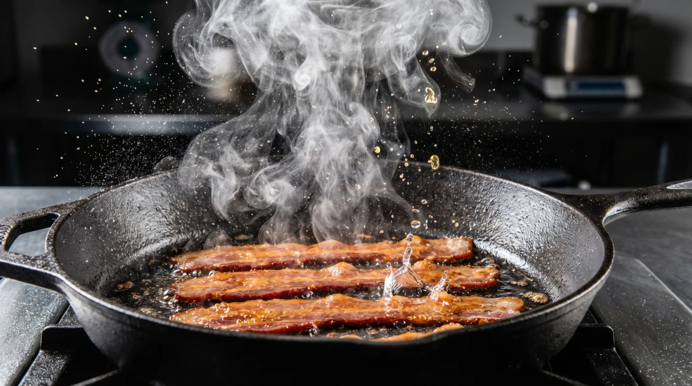 For those cooking on a heavy cast-iron skillet, remember that the metal holds onto heat aggressively. You must always start with a cold pan. Lay the bacon in, pour your splash of water, and only then ignite the burner. The gradual, steady rise in temperature prevents the iron from shocking the pork into an immediate curl.