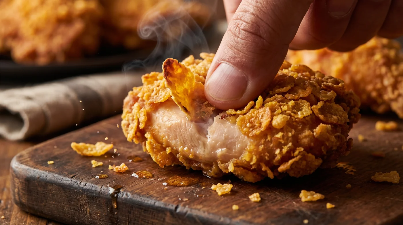 You might assume that creating a truly spectacular crust requires an industrial fryer or a complex, highly guarded spice blend. Yet, the answer is remarkably mundane, hiding in plain sight within your morning routine. A simple box of corn flakes, wedged between the porridge oats and the Earl Grey tea, holds the secret to a golden, jagged armour. This is not a novelty trick; it is a profound textural upgrade borrowed from the quiet corners of professional kitchens.