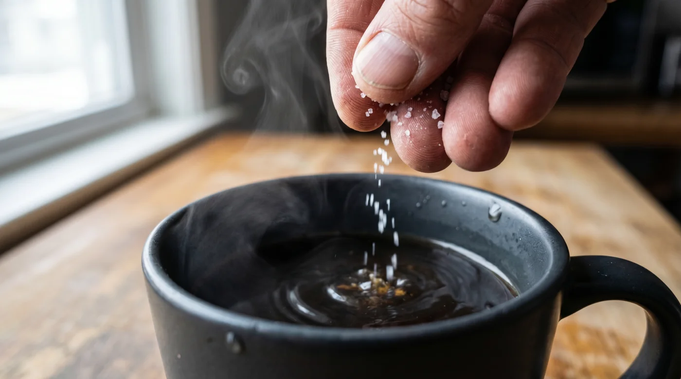 But there is a simpler, quieter correction hiding in your cupboard. The secret to rescuing an over-extracted pot doesn’t lie in the dairy aisle, but right beside the pepper mill. A humble pinch of plain table salt changes the entire chemistry of the morning, turning a ruined cup into a perfectly balanced drink.