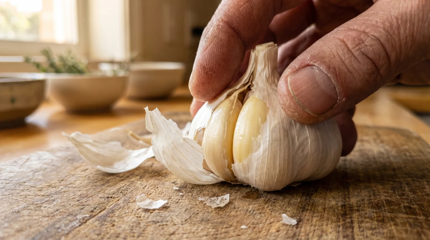 The rain beats a steady, insistent rhythm against the kitchen window pane on a brisk Tuesday evening. You have a heavy cast-iron casserole dish heating gently on the hob, and a recipe that quietly demands an entire head of garlic. It is the sort of foundational flavour building that makes a meal sing, but it comes with a familiar, lingering penalty.