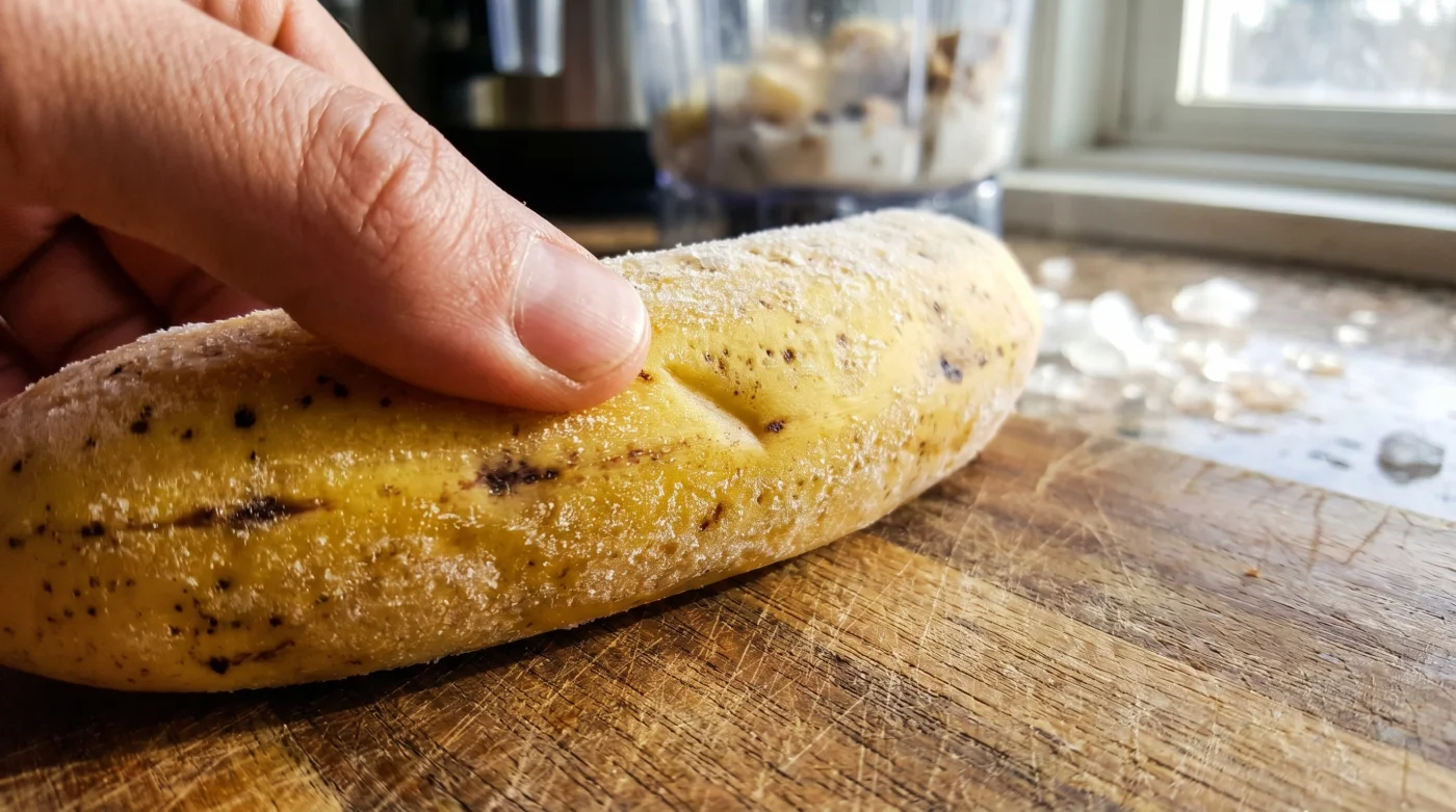 As the skin turns a terrifying, charcoal black in the cold, the inside remains pristine. The natural starches have broken down into sugars, and the freezing process alters the cellular structure just enough. Ice crystals shear the fibre, leaving behind a creamy density that acts exactly like dairy when blended. You stop treating the freezer as a graveyard for dying produce and start seeing it as a texture modifier.