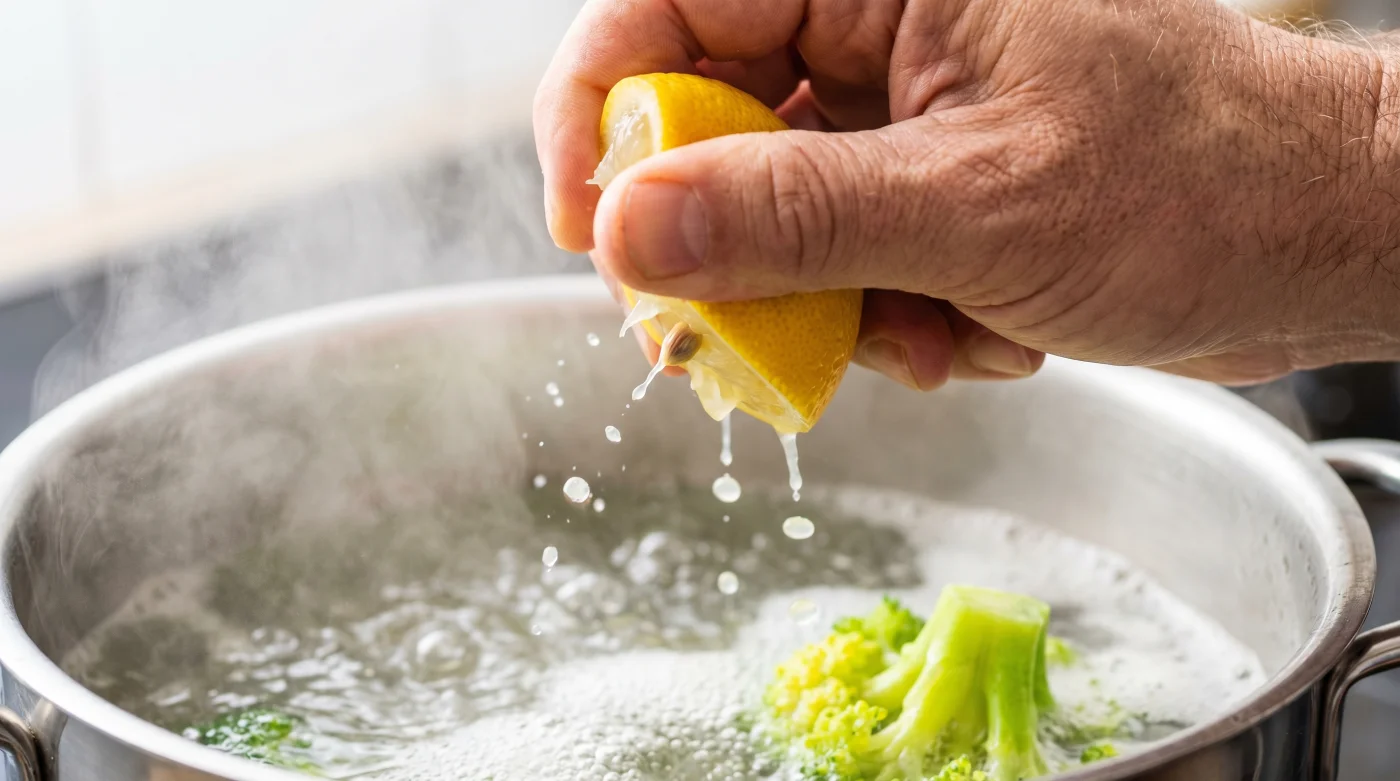 While white vinegar achieves a similar chemical effect, it has a highly volatile aroma that can easily transfer to delicate greens. Lemon is the safer, cleaner choice for your kitchen.