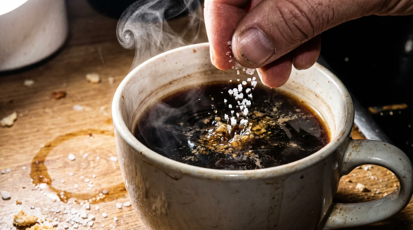 The remedy sitting in your cupboard requires no fancy syrups, no expensive brewing scales, and costs less than a penny. A single grain of salt is all it takes to completely rewire how your palate perceives the dark roast in your hands.