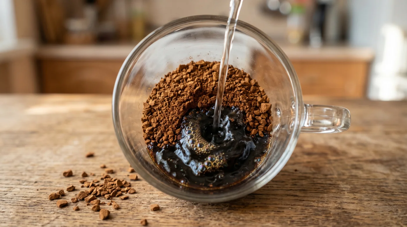 Think of instant coffee not as a cheap substitute, but as an incredibly delicate, pre-extracted concentrate. It has already been roasted, brewed, and freeze-dried. When you hurl 100°C water directly onto these naked granules, you are effectively burning them twice. The coffee never stood a chance.