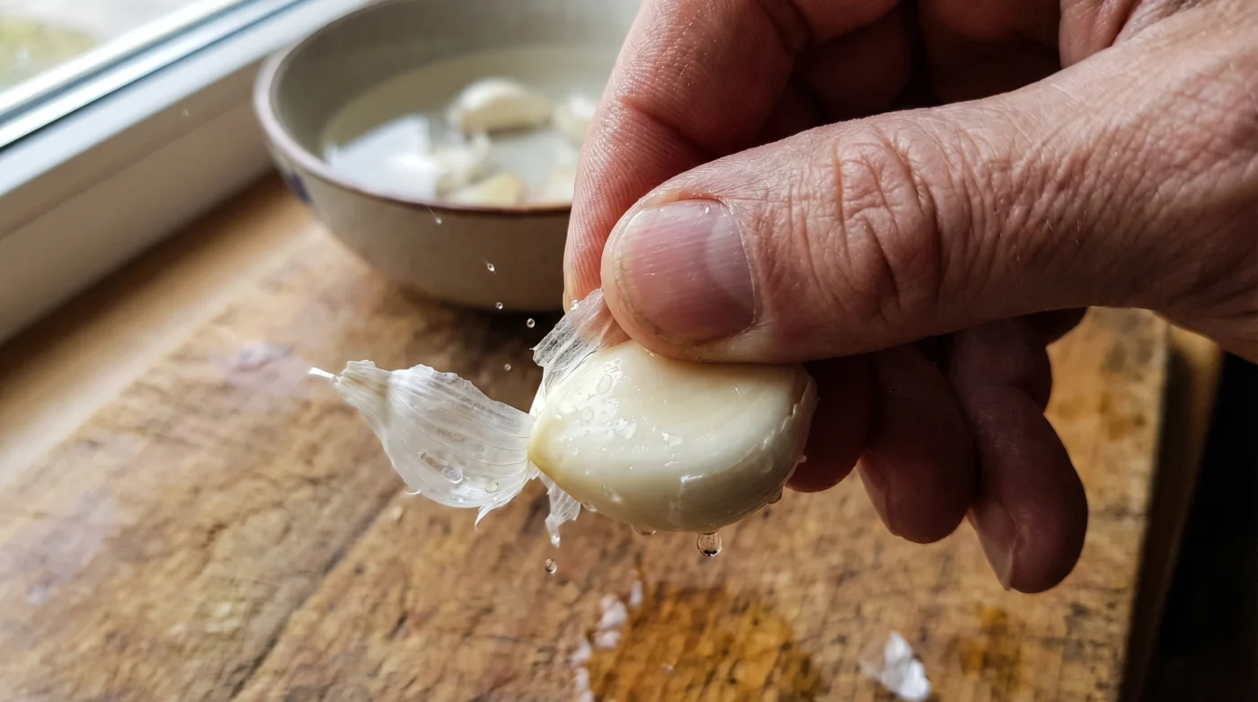 There are evenings when you just need two quick cloves for a simple spaghetti aglio e olio, and waiting ten minutes feels entirely counterproductive to the goal of fast food. For this rapid domestic fix, place the cloves in a standard ceramic mug and pour over water from the kettle that has been left to cool for five minutes. The slightly higher heat accelerates the loosening process to roughly sixty seconds, giving you just enough time to gather your heavy pans and gently heat your olive oil.
