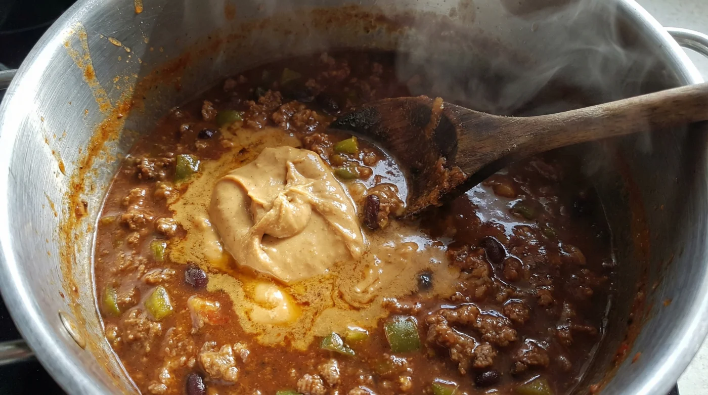 The immediate instinct is to panic and reach for a powdery crutch. You might hastily mix cornflour with cold tap water, pouring in a milky slurry that thickens the pot but leaves your rich sauce glossy, synthetic, and strangely jelly-like. Or perhaps you sprinkle in plain flour, only to find it clumps into pale, doughy islands that taste faintly of raw pastry. But the secret to binding a fractured, watery chilli does not live in your baking cupboard. It lives beside your morning toast. A spoonful of smooth peanut butter is the answer.